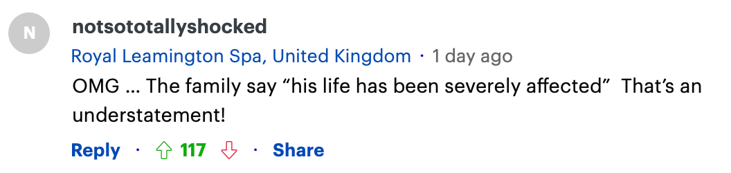 “我的天,受害者家人说受害者生活收到了‘严重影响’,这个形容简直低估了影响!”