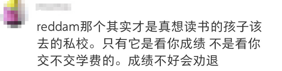 “reddam才是读书孩子该去的私校,因为只有它是看你成绩,而不是看你交不交学费,成绩不好会劝退!”
