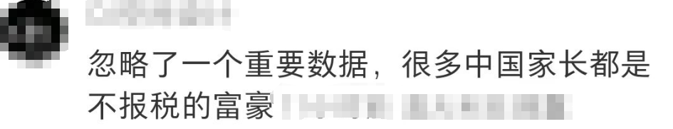 “忽略了一个重要数据,很多中国家长都是不报税的富豪。”