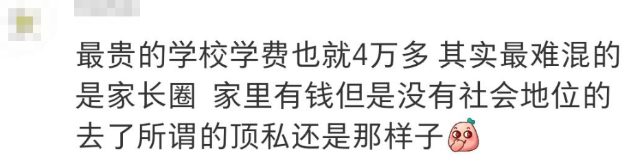 “最贵的学校学费也就4万多,但其实最难混的是家长圈,家里有钱,但是没有社会地位,去了顶私也还是那样子...”