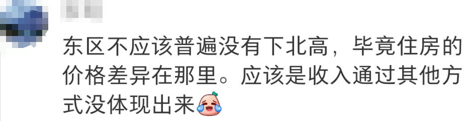 “东区不应该普遍没有下北高,毕竟住房的价格差异在那里,应该是收入通过其他方式没体现出来”