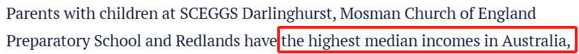 悉尼其他备受华人家庭青睐的私校的家庭平均收入也都不低!