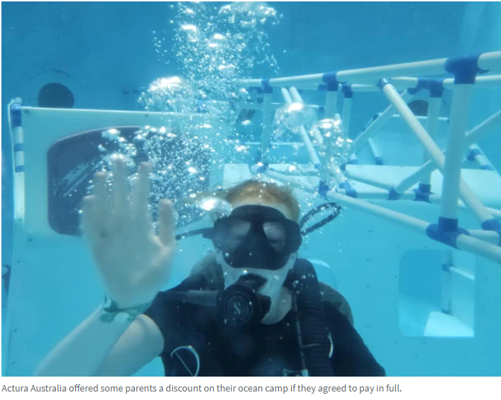 在Actura Australia 破产清算的一个月前,这家教育旅行组织者向一位就读于 Mentone Girls' Secondary College 的家长提供了 623 澳元的折扣,条件是她同意全额支付其女儿参加 CASE 海洋营的费用(该活动定于明年 9 月举行)。