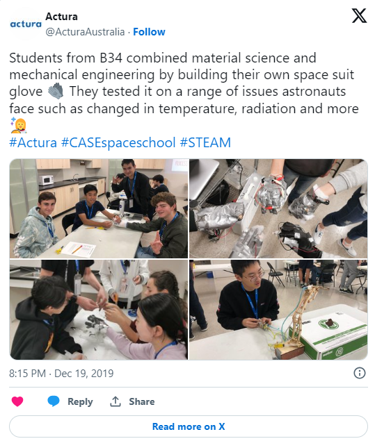 “Actura 的太空计划对我们的学生来说是一个令人兴奋的教育机会,他们热切地期待着即将到来的旅行。”