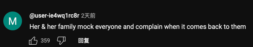 “她和她的家人嘲笑每个人,当事情反过来时她们却抱怨。”
