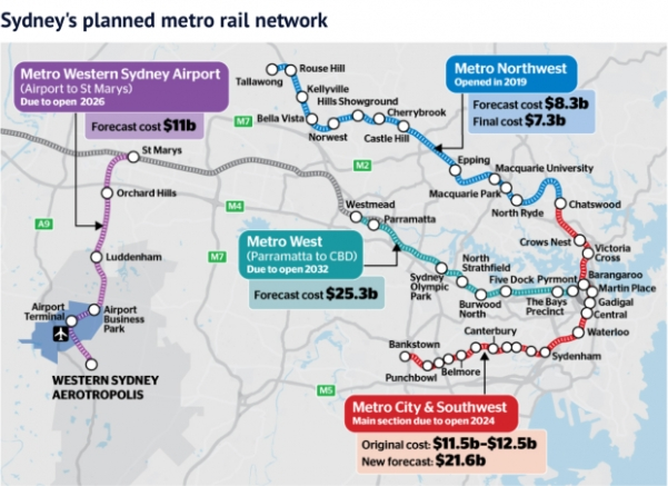 在长达七年的建设过程中,悉尼不断扩大的无人驾驶列车网络的二期工程被称作Metro City and Southwest线,它是现有Metro Northwest的延伸,后者于2019年在Rouse Hill和Chatswood之间开通,耗资73亿澳元。