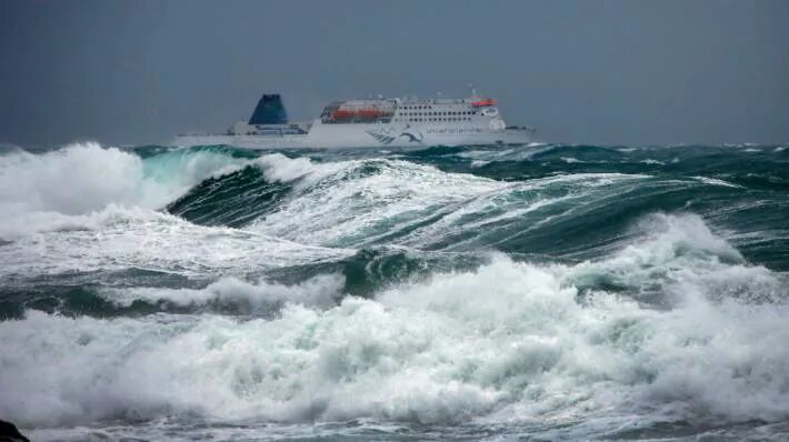 搁浅后,这艘渡轮在海里打转。