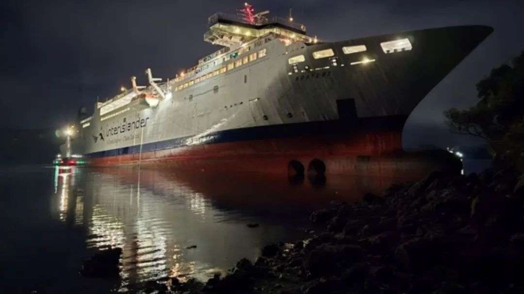 周五晚10点,新西兰Interislander公司的Aratere渡轮在南岛的皮克顿港搁浅。