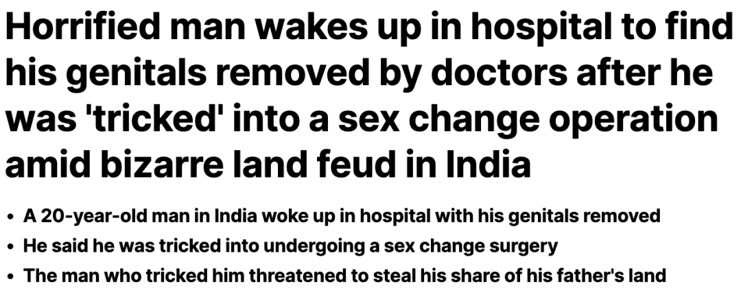 医院还称,当时还专门为穆贾希德安排了两名精神科医生以评估其精神状况,在通过了之后,才通知穆贾希德来到医院,进行了变性手术,“所有程序都是合法的。”目前,该案件正在进一步调查中,印度警方尚未公布官方结论。印度的手术乱象屡见不鲜,曾发生过多次因手术不规范而造成多人死亡的事件。