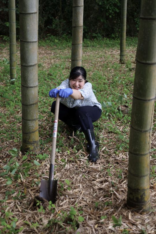 挖竹笋、撸小羊,现场照片无缝对接农村生活,看得出来在这样的环境里爱子的心情相当松弛,笑起来也很开心。