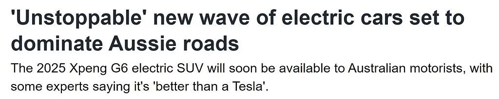 一位行业专家表示,这凸显了中国电动汽车在市场上“势不可挡”的事实。随着时间的推移,可以期待在澳洲道路上看到更多中国电动汽车。