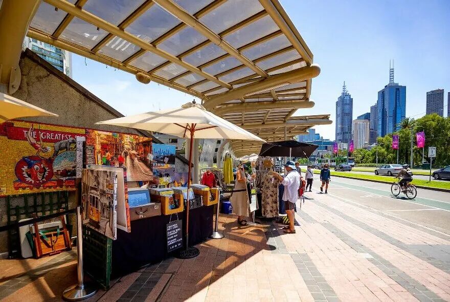 沿着St Kilda Road漫步,在Hamer Hall 附近有一处墨尔本人非常喜爱的周日市场——墨尔本艺术中心周日市场。每个星期日,这里都有一众设计精良、充满巧思的手工艺术品等待着大家前来探寻。受墨尔本艺术区建筑改造影响,7月起,这个市场将永久关闭。欢迎你在最后两期前来,与这个艺术市场告别。