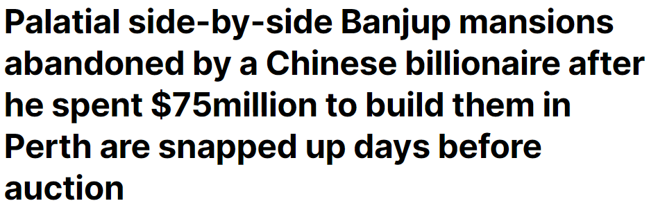 据《每日邮报》称,由一位中国亿万富翁花费7500万澳元建造的两座废弃的宫殿式豪宅在拍卖前几天刚刚售出。