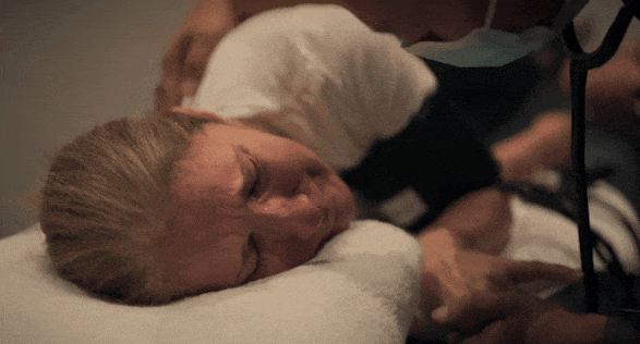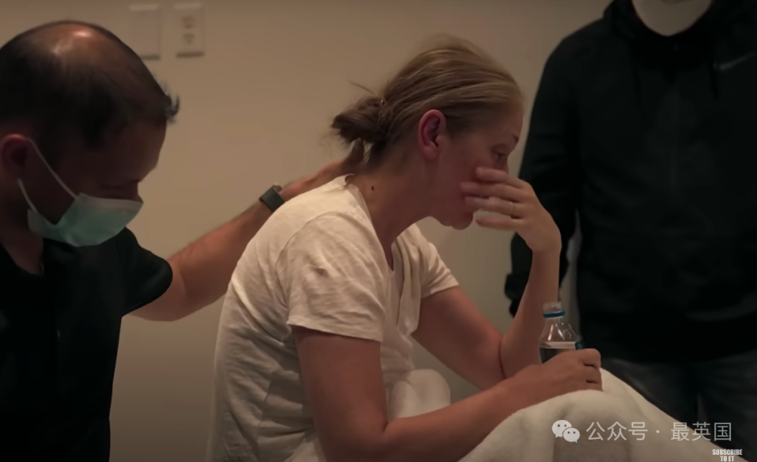 随后她全身僵硬,强忍泪水……医疗团队见状,随即为她注射药物。