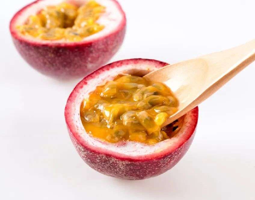 ● 2 岁以上的宝宝,开始逐渐接轨成人膳食,但孩子的吞咽功能尚未发育完全,可以谨慎少量尝试带籽的百香果肉。