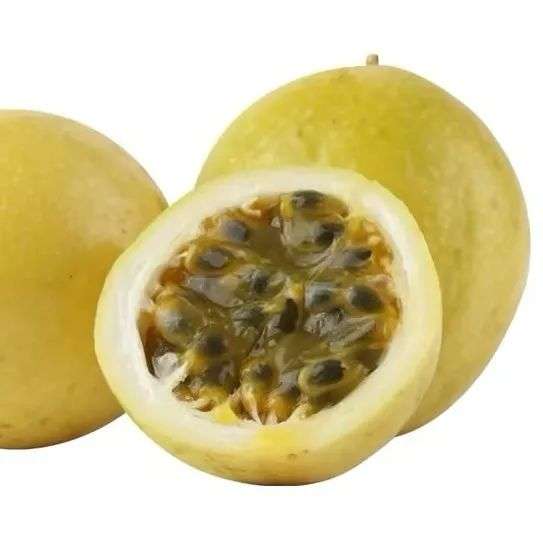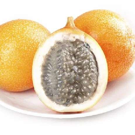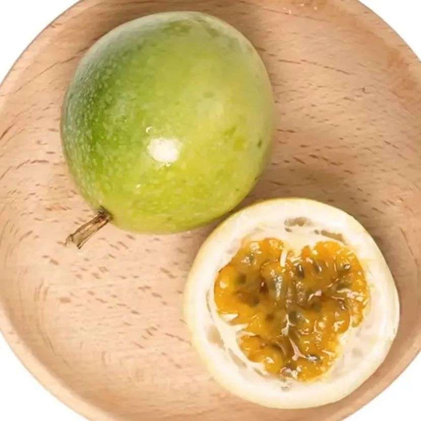 黄色百香果 胡萝卜素含量略高,酸度低,口感甜,适合直接用勺挖着吃。