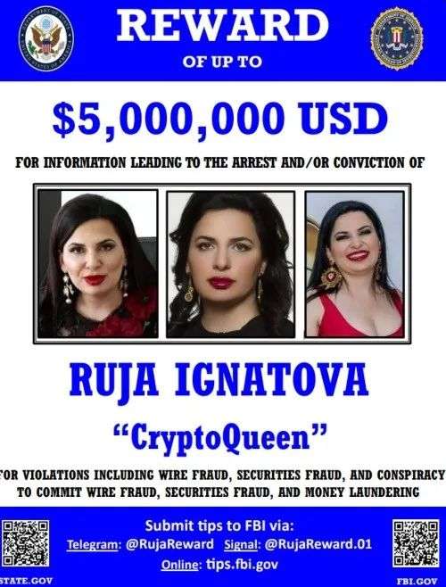 世界头号女通缉犯,失踪的保加利亚“加密女王” Ruja Ignatova的悬赏金额从曾经的10万美元增加到了5百万美元!