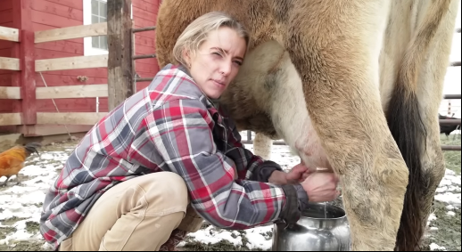 有时,她会在镜头前一脸享受地品尝着自家农场的牛奶,牛奶的香气也把小女儿吸引来,姐的杯子会被她一把抢过。