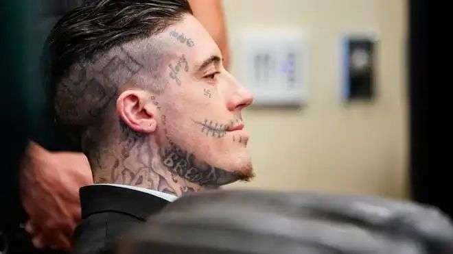 这些纹身暗示着他的种族主义和犯罪崇拜,在审判期间显得尤为醒目。