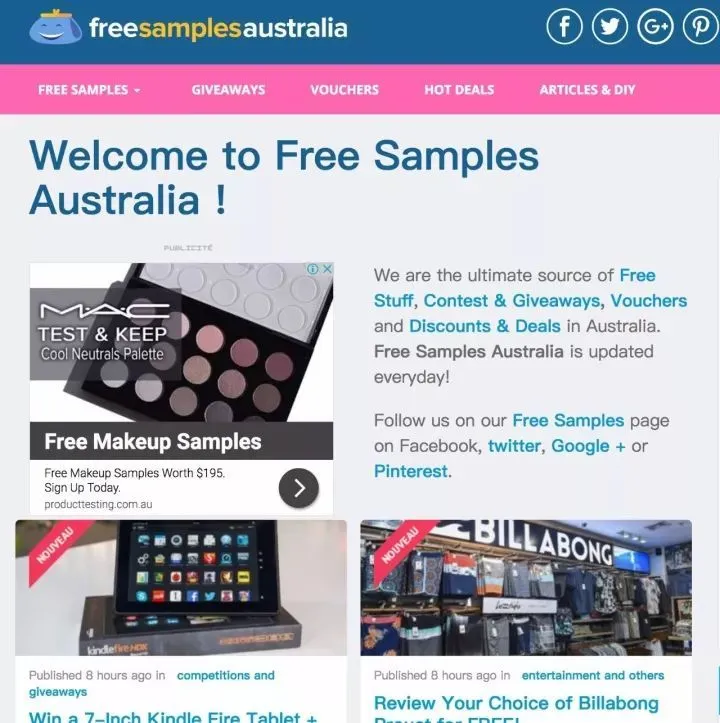 还有一个女生福利——Free Sample Australia。给商家填写问卷,或者做个小调查,就可以获得免费的小样!