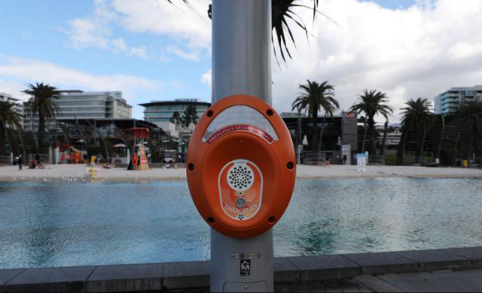 这是一个应急呼叫设施,是给在游玩过程中突然发生疾病或者遇到困难的人用来呼救的应急装置。