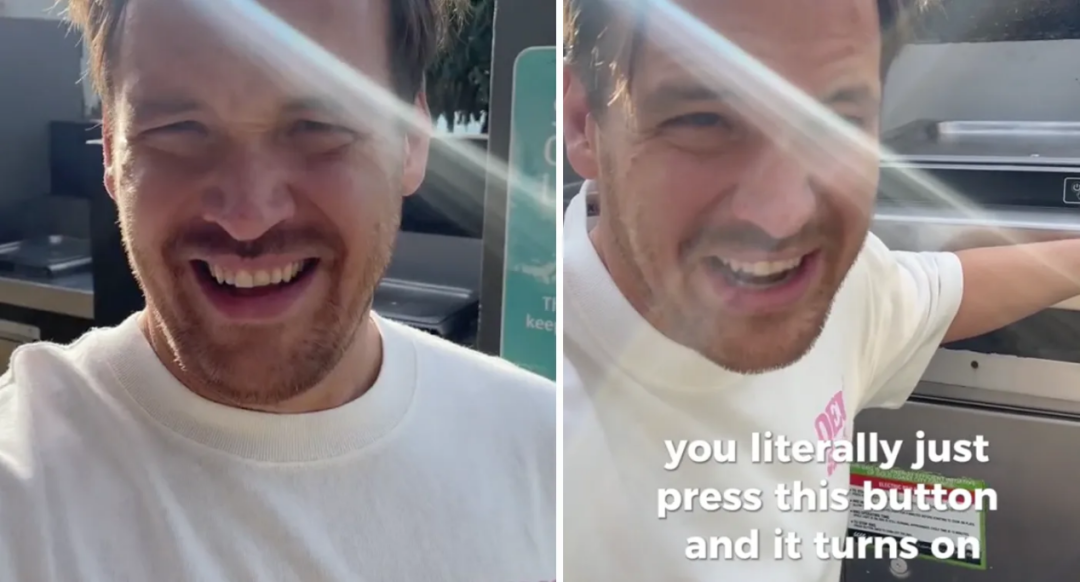 在视频中,他惊讶地表示自己发现在海边有一个他从未听说过的“超级酷”设施——公共烧烤炉。