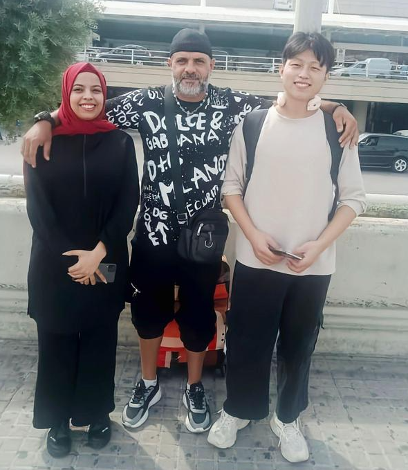 ● 周创在黎巴嫩机场第一次见到茉莉和她的父亲。图片来源:抖音@巴勒斯坦媳妇茉莉