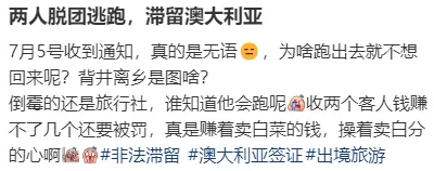 该博主称,在赴澳的旅游团里有两个人脱团逃跑,待在澳洲不回来了。