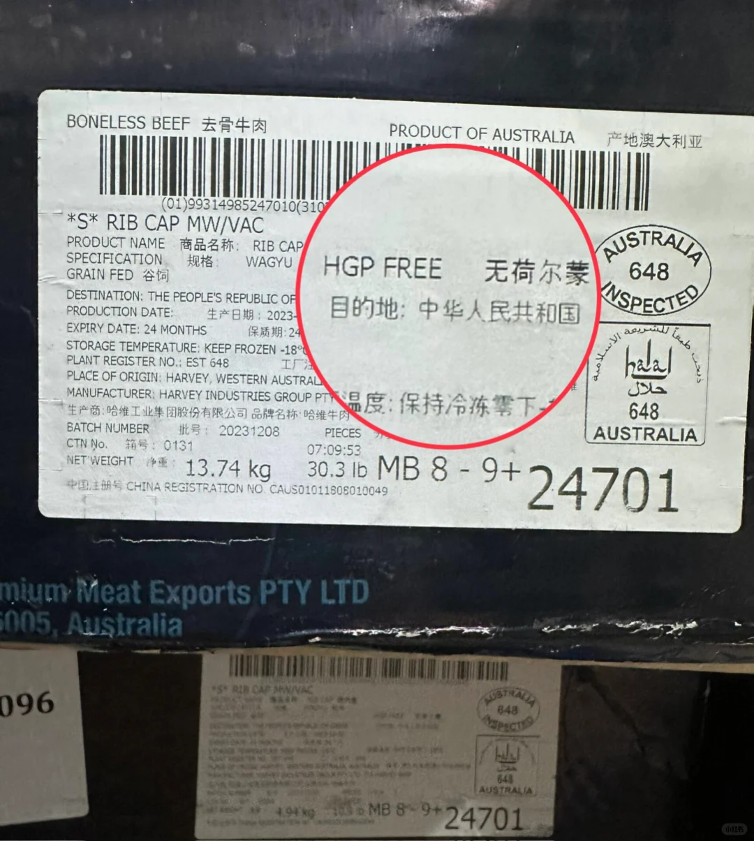 还有不少购买澳洲出口到中国的牛肉的网友分享,这些来自澳洲牛肉的包装上会标注HGP free,表明牛肉产品未添加任何荷尔蒙生长促进剂。
