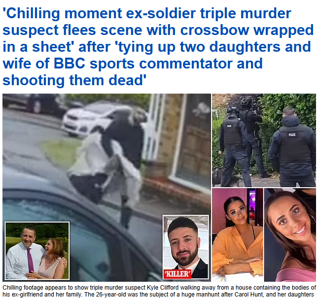 “BBC评论员妻女3人被十字弓残杀”的新闻上了各大外媒的头条,经过十几个小时的全城缉凶才抓到杀人凶手!