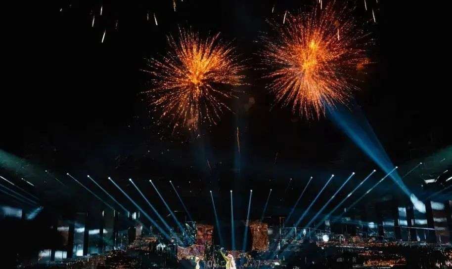 在水果姐《Firework》一曲唱响时,客人们刚好能看到绚丽多彩的烟花表演划过地中海的天空……