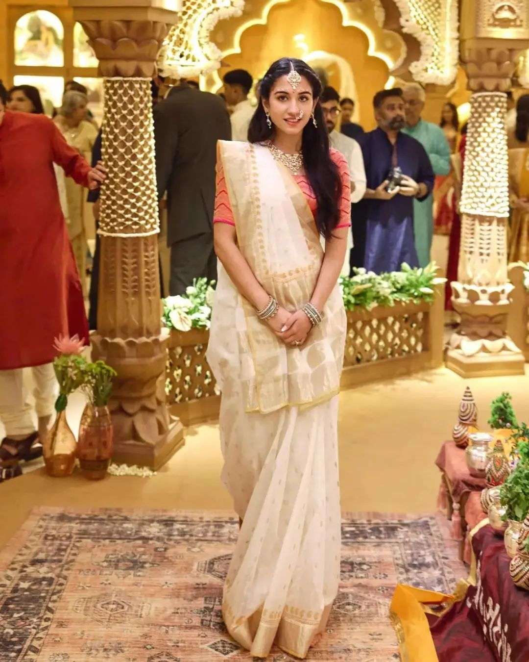 先说场地,这场婚礼在可容纳1.6万人的Jio世界会议中心举办(这个会议中心在新郎妈妈的名下),提前布置好了奢华装饰,要求所有人以印度传统服装出席。
