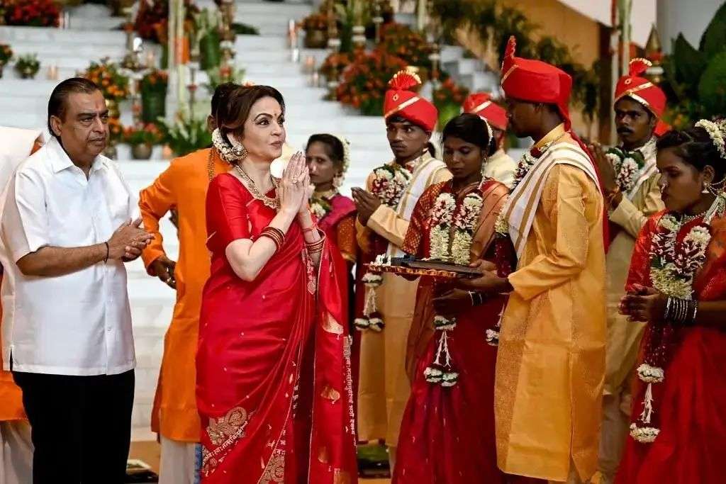 7月2日,他们在孟买举办了一场集体婚礼,邀请50多对贫困夫妇一起结婚,由安巴尼家包下所有婚礼费用,甚至包括金饰和新家装修置办费用……