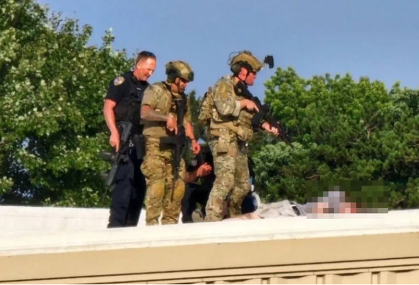 枪手当场被驻扎在另一栋建筑屋顶的执法机构狙击手击毙。执法部门在现场找到了一把 AR式步枪。