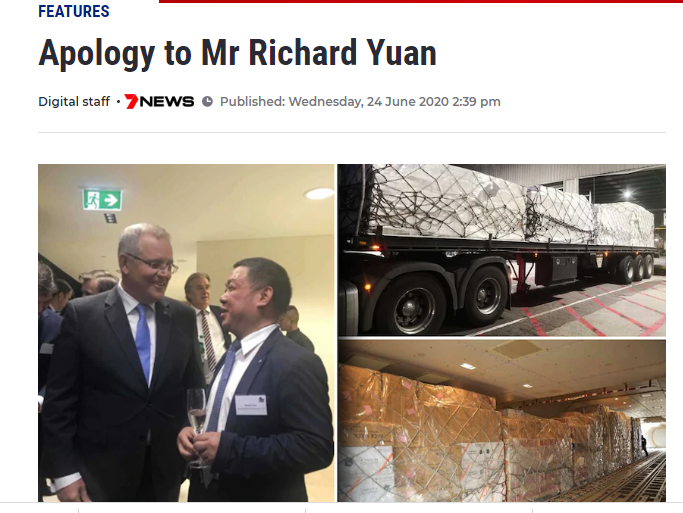 澳大利亚的7News频道因误报一起涉及华裔侨领邝远平、袁祖文与杨东东包机捐赠抗疫物资的新闻,将他们的善举污蔑为“趁疫情之际发国难财”。