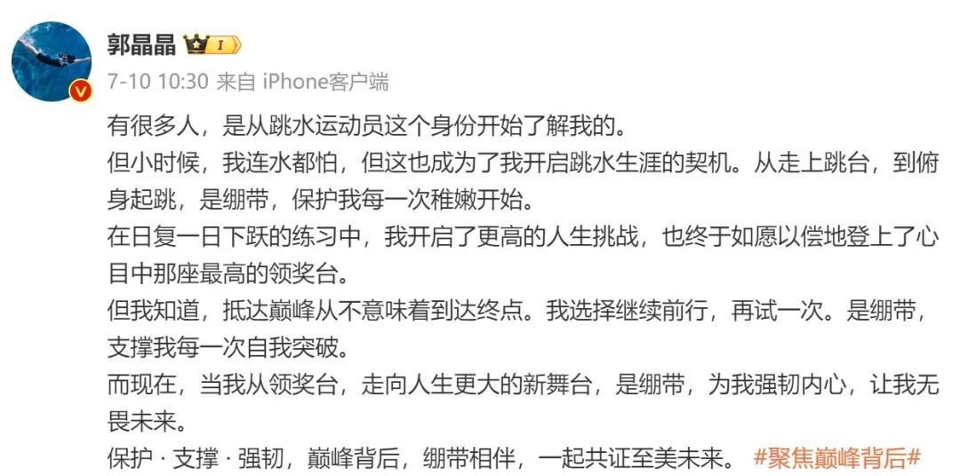 祝福郭晶晶,也祝福每一个奋斗着的女性。