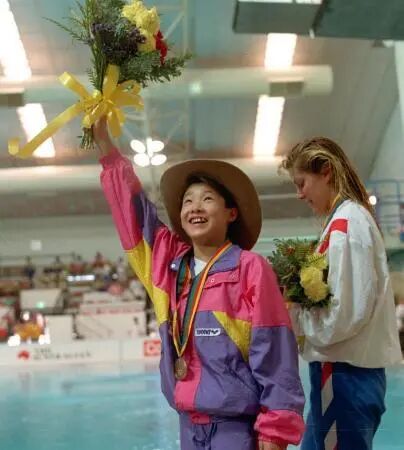 就在一年前的巴塞罗那奥运会上,13岁的伏明霞横空出世,一举夺得女子十米台冠军,成了历史上年龄最小的跳水冠军。