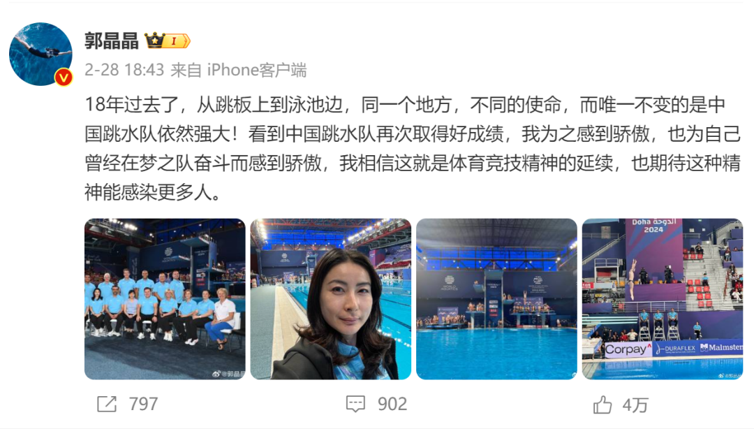 本届巴黎奥运会,郭晶晶担任跳水项目裁判长,网友表示: