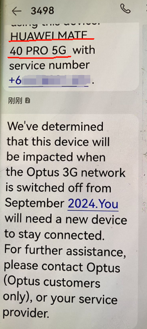 “该手机不会受到Optus 3G 网络关闭的影响。你不用做任何事情...”