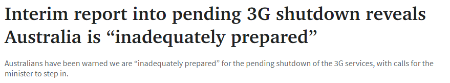 准备切断全澳3G网络的中期报告称:澳洲“准备不足”,并呼吁部长“紧急会见”Telstra 和 Optus,延长截止日期,直到确保澳洲的 4G 网络有足够的替代能力。