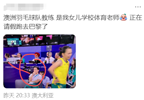 比如:澳洲羽毛球队的教练是一名体育老师,