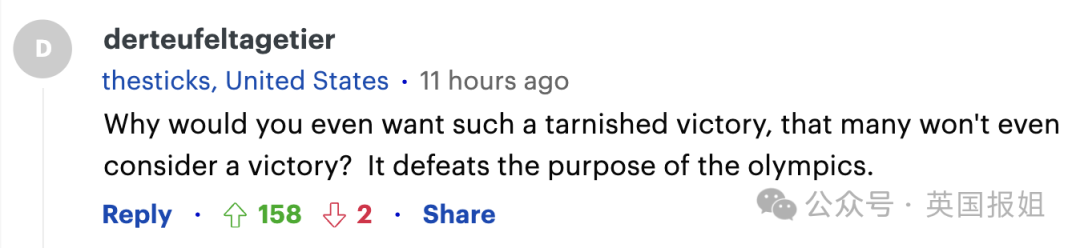 “为什么你想要这样有瑕疵的胜利,而且还是很多人不会认可的胜利?这违背了奥林匹克比赛的目的。”