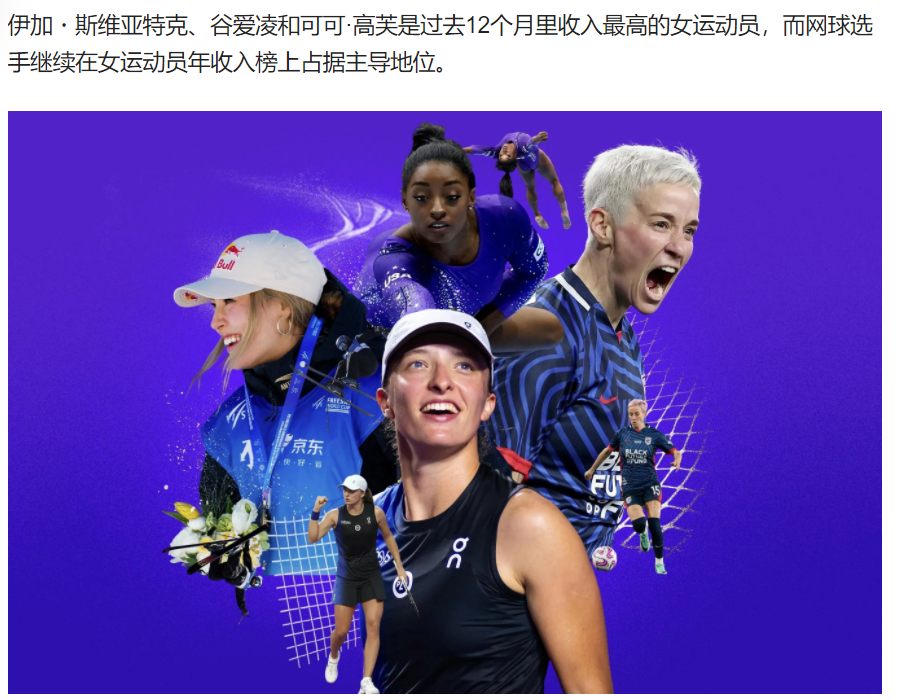 另一位商业新贵运动员谷爱凌,在北京冬奥会之后商业价值爆发。《福布斯》评选2023年全球收入最高的女运动员中,谷爱凌以2210万美元排名第二。赛场上的收入10万美元,而其他2200万美元均来自商业代言。