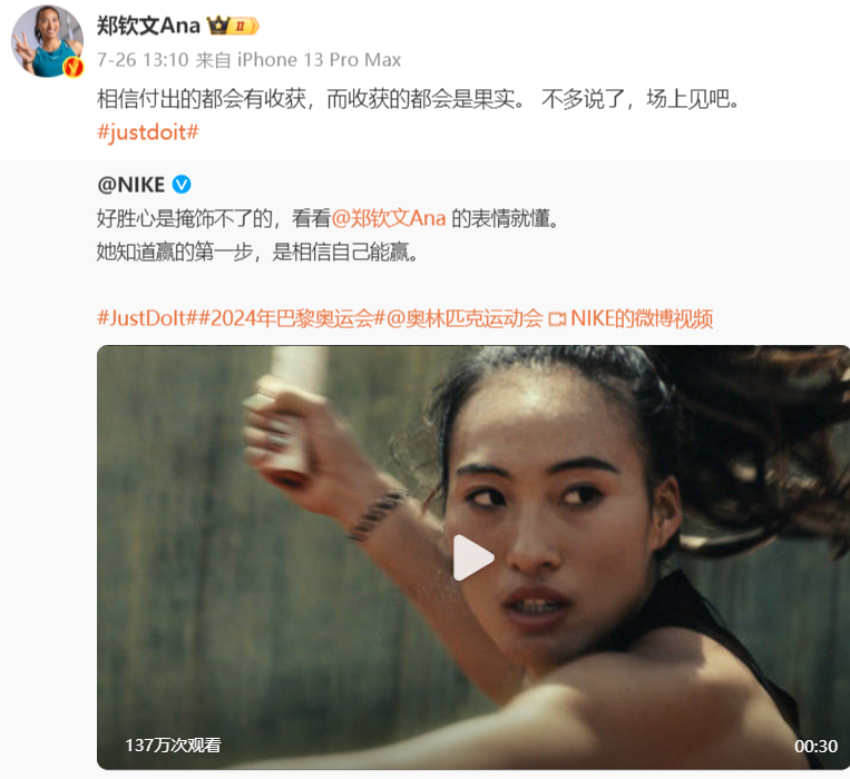 行业人士表示,郑钦文已成国际体坛巨星。并且极有可能已成为现阶段商业价值最高的中国运动员。