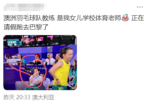 比如:澳洲羽毛球队的教练是一名体育老师,