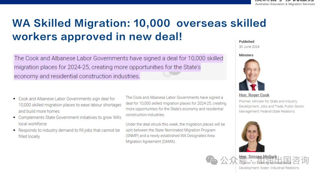 西澳政府明确2024-2025财年有10000个移民配额。