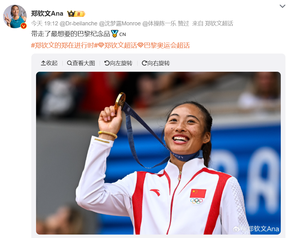 夺冠后郑钦文说,从小在她和家人的心里,奥运会就是比四大满贯更重要的存在,国家的荣誉永远是要超过个人的,她相信每个中国人心中也都是这么想的。