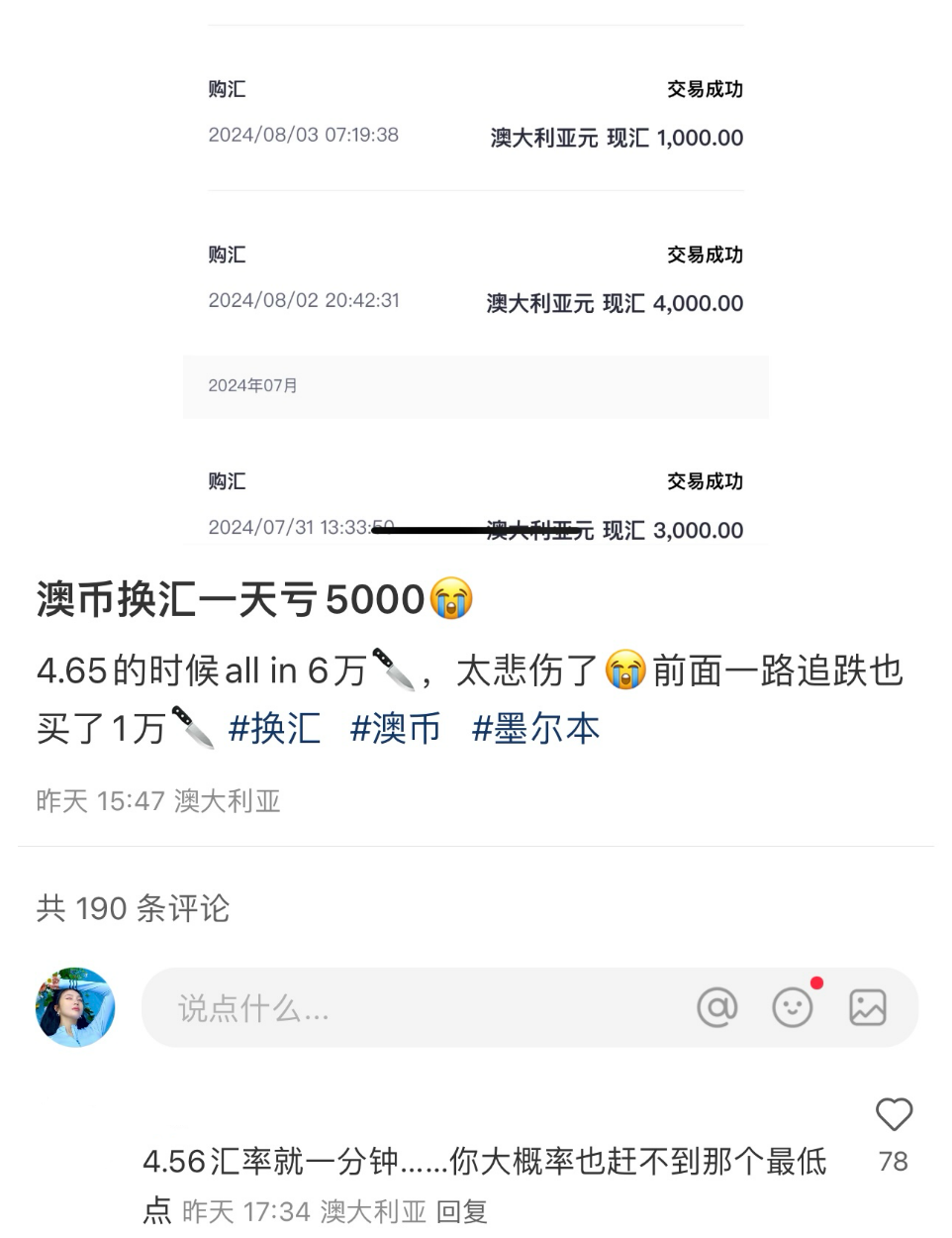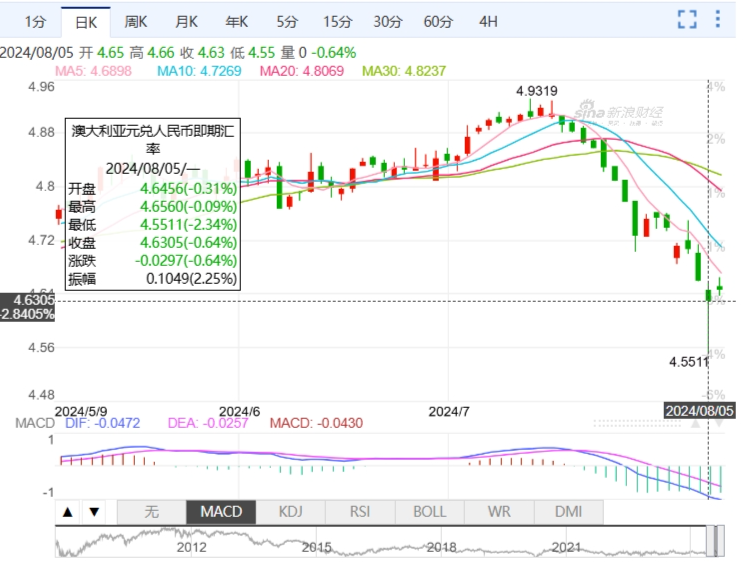 昨天,澳币突然暴跌,最低点竟降至4.55!