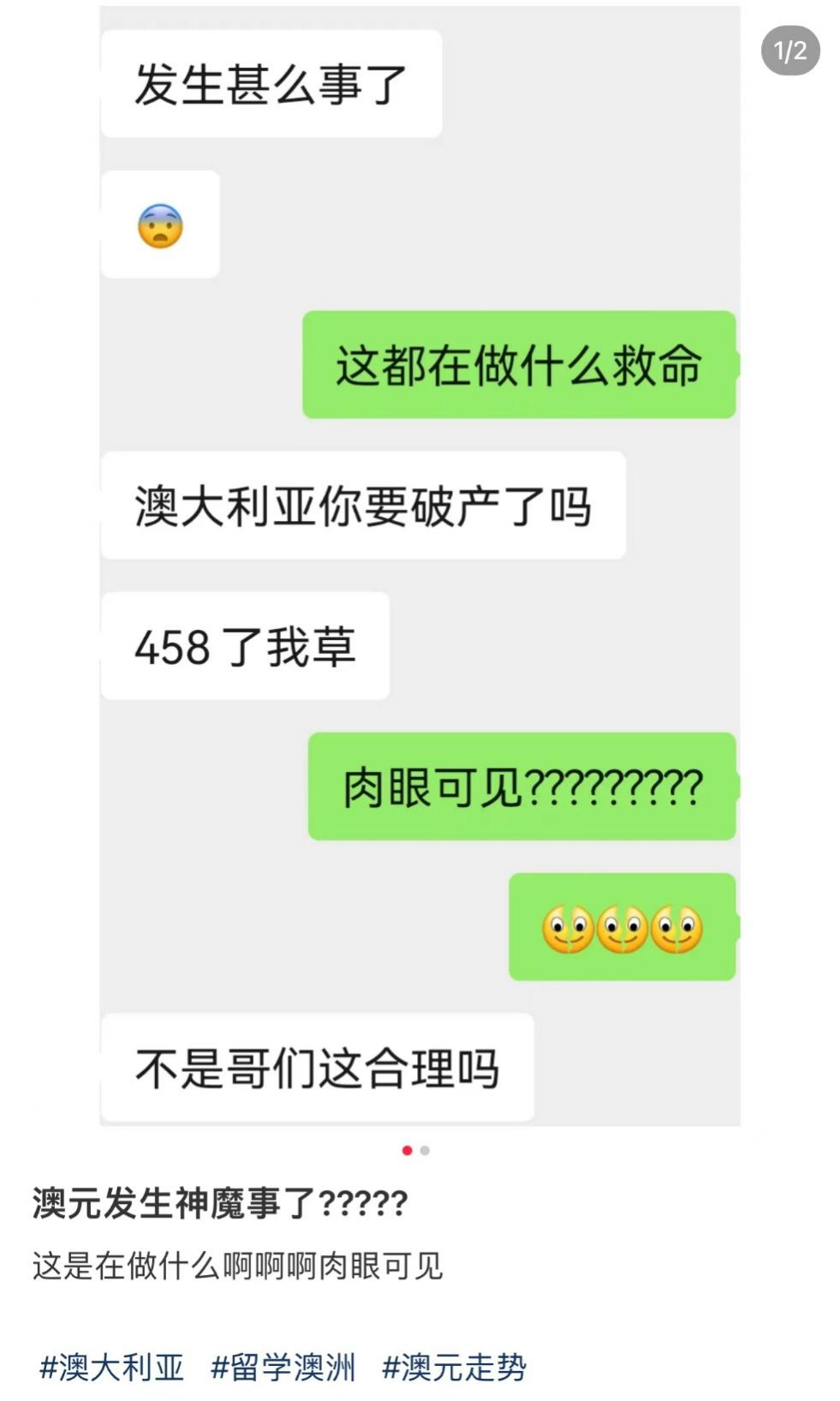 这个汇率让不少在澳的华人都惊呆了,毕竟上一次这么低的汇率,已经是去年年中的事儿了。这可是个千载难逢的换汇好机会!