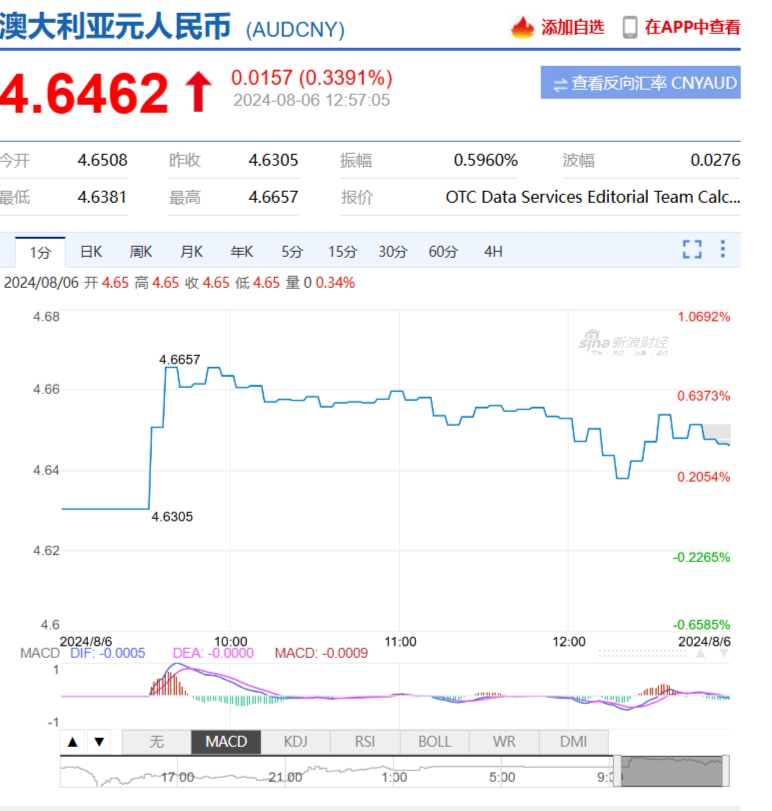 今天开盘,澳币兑人民币就开始小幅回升,目前在4.64左右,也还是不错的汇率。现在还想要换汇的小伙伴,还来得及!